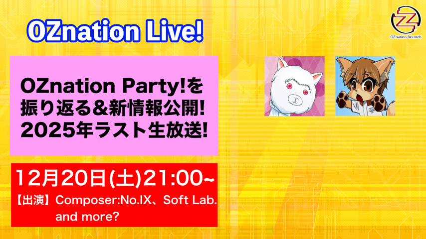 12月のOZnation Live!は17日()21:00~生放送
